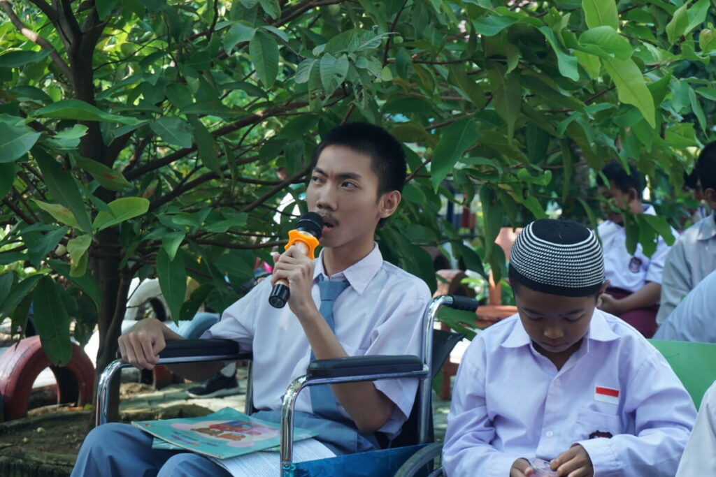 Meriah dan Ceria…. dua kata yang cukup paripurna menggambarkan suasana pagi tadi di SLB Insan Madani. Bagaimana tidak, Puspaga Gaharu menghadirkan sosok paling sentris seputar dunia anak di Indonesia. Seto Mulyadi atau yang lebih akrab dipanggil Kak Seto menyapa para anak-anak SLB di sekolah yang rindang lagi asri tersebut.